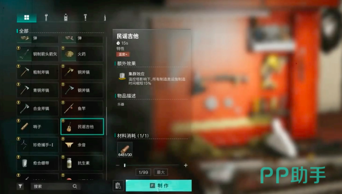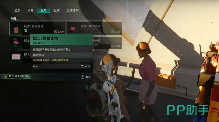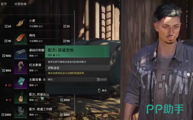配方的第二个获取位点是在旅人营地,玩家需要在女人营地当中找到韦伯,韦伯在一棵木桩之下,在他手里同样需要花费2000货币,可以购买到其他配方,而之后的操作与上文相同,可以前往工作台制作,之后就可以使用了,吉他的操作方法非常简单,是由三行音阶组成,玩家还可以对吉他的音量,以及音调高低进行自行调节,演奏出更多独一无二的乐曲,小伙伴们赶紧来试一试吧。