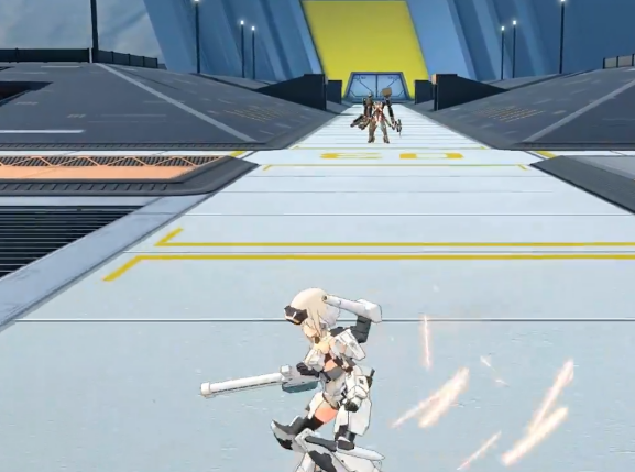 副格斗技更是将她的技能玩法带向了一个新的高度。她借用猎刃的装备,开启全力火力冲锋,在攻击的同时还能根据方向键调整攻击方向。这种强力的冲击让敌人很难反应过来。而如果在使用副格斗时再次点击,轰雷改则会借用短剑的武器,持续对敌人进行射击,并迅速拉开距离,避开敌人的反击。
