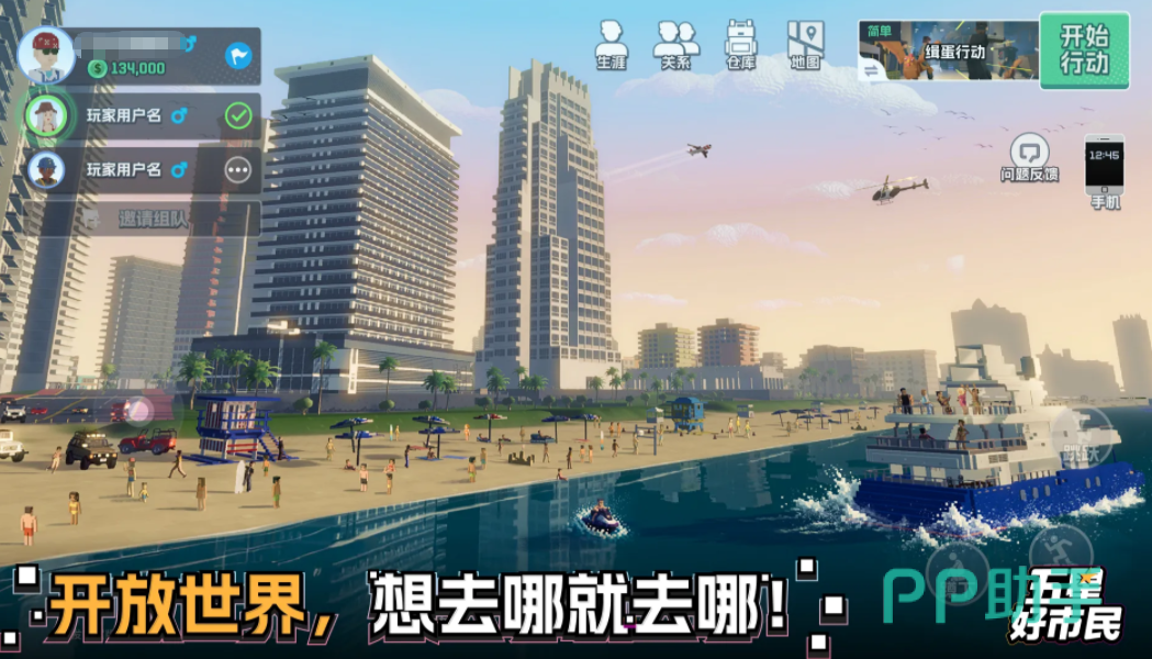 战斗系统深度融合策略性与沉浸感:支持枪械远距离精准射击与近战格斗切换,掩体利用、弹道预判、环境互动均为核心操作要素。需特别注意——任意场景破坏行为将直接提升角色犯罪值,数值超标后将触发全城通缉,警方AI将实施高强度围捕,形成持续追击压力。推荐多人联机协作,通过分工配合应对高难度目标与突发危机。