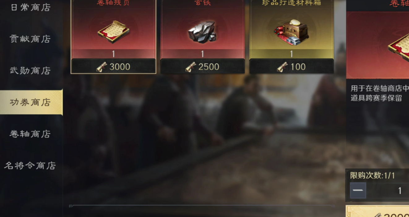 玄铁这一道具,玩家可以前往到功卷商店内,通过消耗2500点的功卷购买一份玄铁,但玄铁每一个赛季限购一次,也就是说玩家的神兵每个赛季只能够通过商城修复一次。