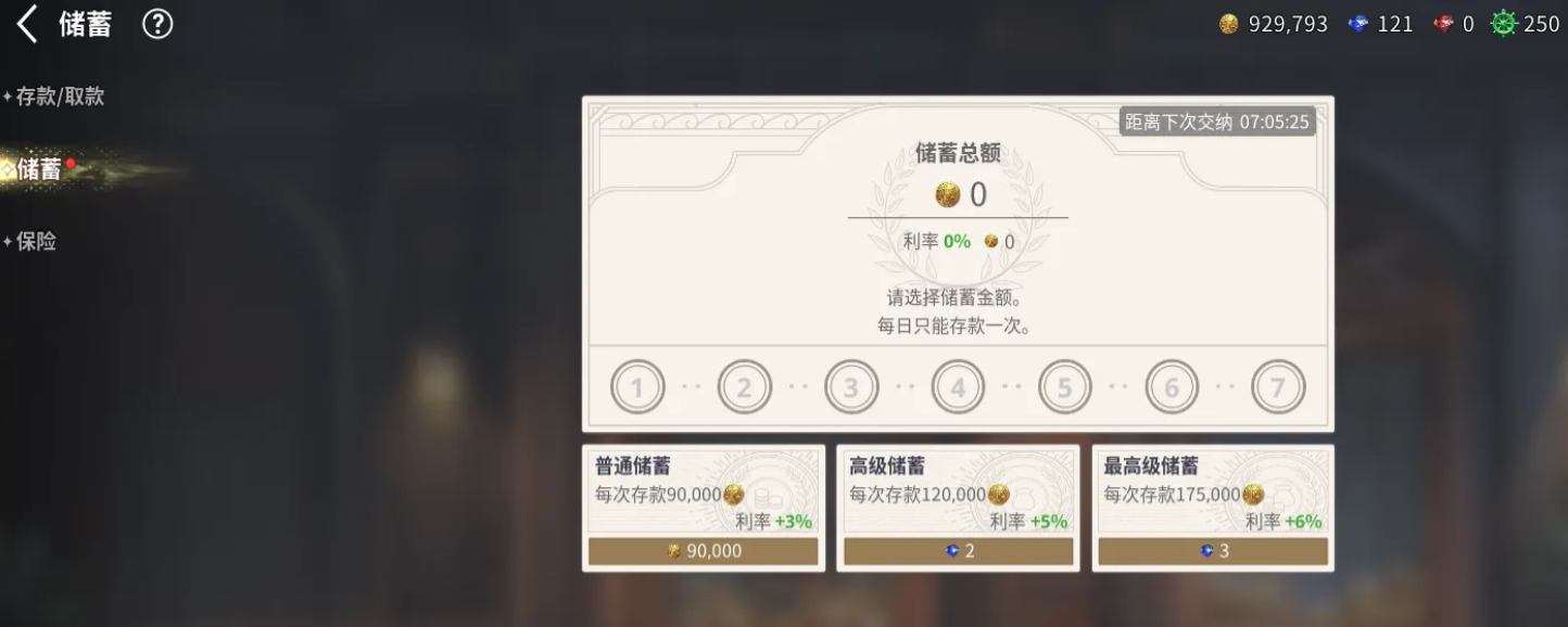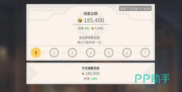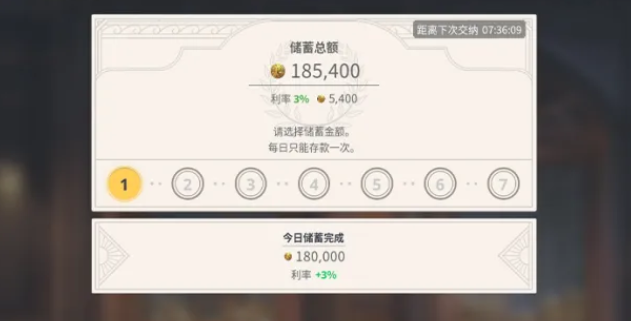 第二项为周期储蓄服务,设定固定7天储蓄期,期内每日限操作一次汇款;到期后可全额支取本金,并额外获得约定利息。第三项为定额保险服务,当玩家在航海过程中因不可抗力(如海盗劫掠、风暴沉船)造成实际资产损失时,可依据投保额度申领对应赔偿金。