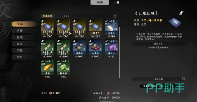 当玩家推进主线剧情至一定阶段后,便具备了基础移动能力。此时可优先前往枰栌城,在该城池中寻找绝影楼密探。这位NPC常年驻守于市井之中,手中掌握多种稀有武学秘籍,其中包括“云龙三现”。无需完成前置任务或触发隐藏条件,仅需与其对话即可开启购买选项。但由于该轻功为金色品级,价格较高,建议提前通过完成支线任务积累资金。特别是涉及门派纷争、江湖恩怨类任务,通常奖励丰厚,有助于快速筹措银两。