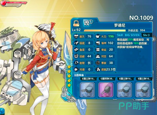 第二个小编十分推荐的是罗德尼。他有中破保护,而且护甲方面也是非常不错的技能触发后则可以大大提升伤害爆炸率,总体来说也是非常不错的选择。对于E8院长这种高甲单位可以说是有着非常大的攻击优势,但它也有自身的一个缺点,就是航速偏低,不过就其整体打击优势来看,小编觉得萌新玩家也可以考虑带上一个,应该会对玩家们起到非常大的帮助。