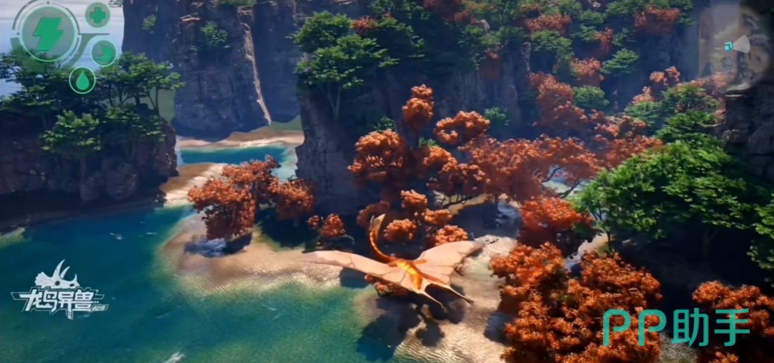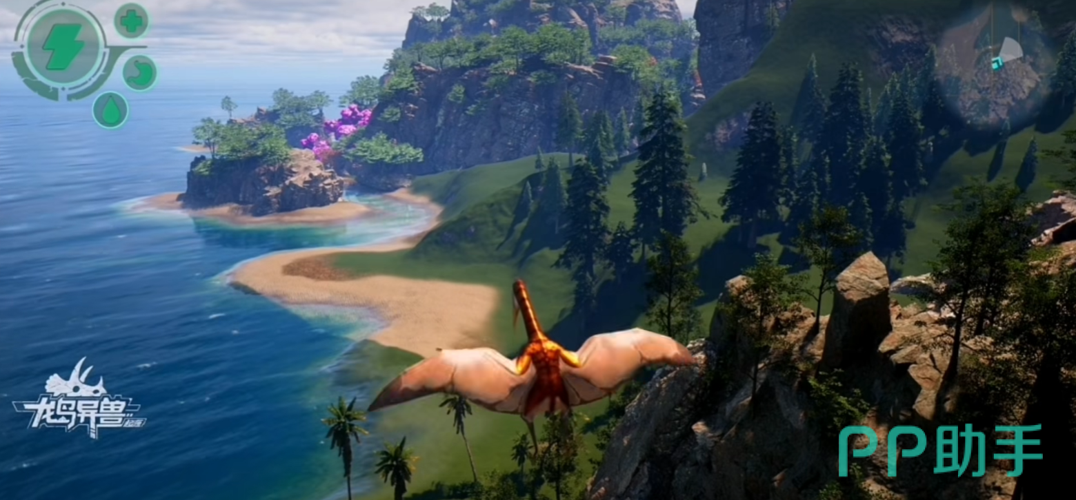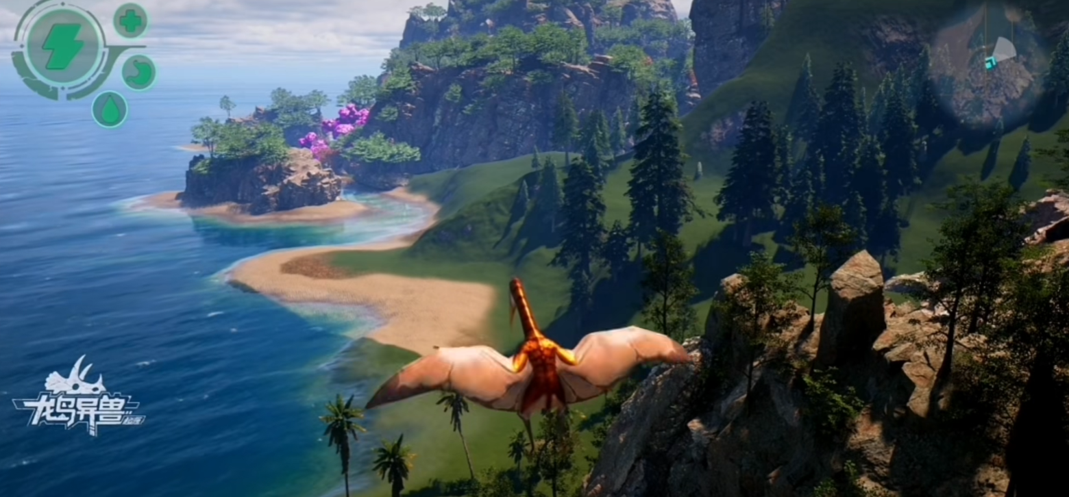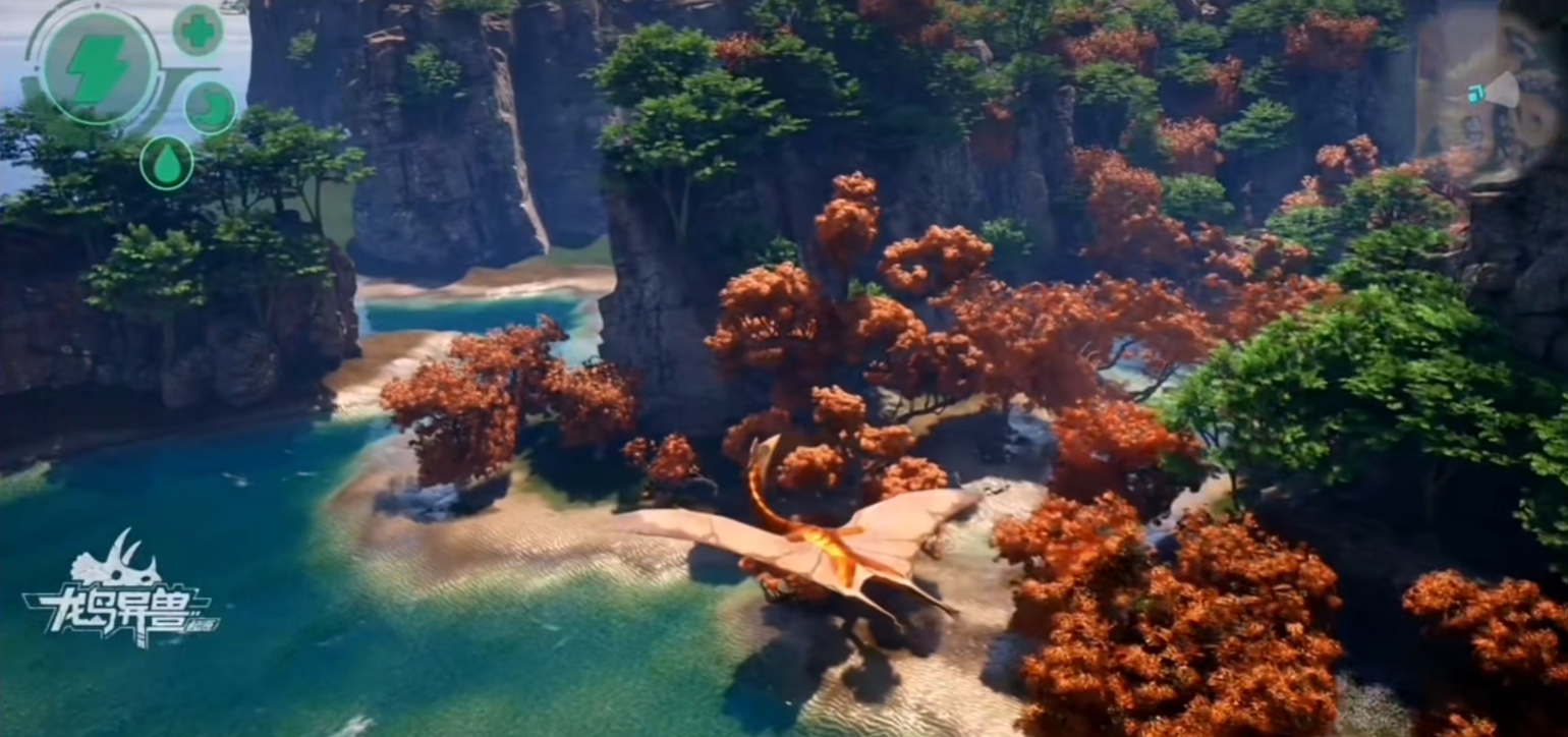 小地图位于屏幕右侧,实时反馈战场态势。红色标识代表敌对单位或高危区域,绿色表示安全缓冲带,金色则提示未被发现的宝藏点或稀有恐龙巢穴。熟练玩家会结合地形特征制定战术路径——例如遭遇强敌时,迅速切入高海拔岩壁后的地下通道网络,利用复杂结构规避追击,实现战略转移与反制准备。