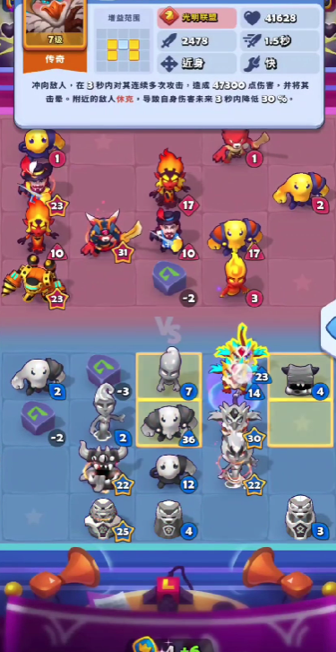 由于圣诞老人属于功能性辅助型前排,上阵他会挤占一个输出位。面对爆发型敌人时,他的护盾机制能有效化解关键伤害;但若对手以持续性输出为主,则护盾易被缓慢磨掉,难以发挥应有作用。此时更推荐替换为仙灵公主或图腾类单位来应对。