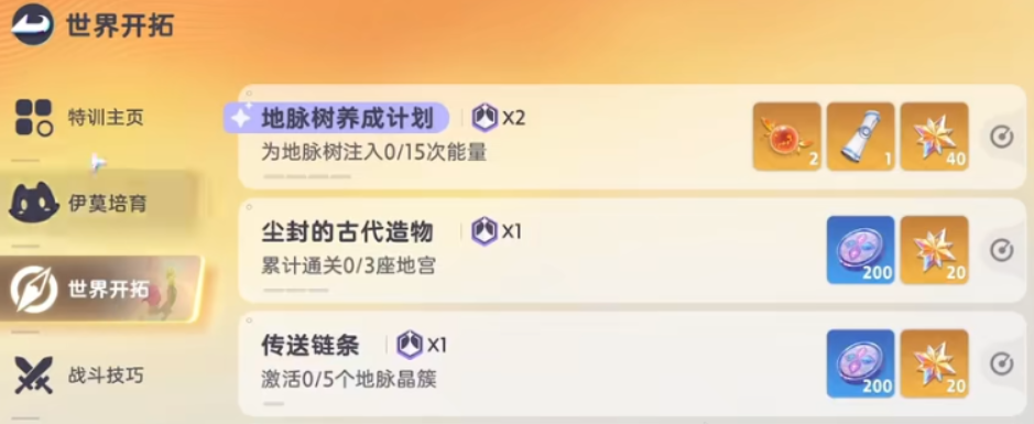 另一种可行方式为完成世界探索任务。在主世界地图中分布着多种探索性质的任务目标,大部分任务完成后都会附带辉石奖励。任务难度决定奖励数额:简单任务通常给予20个辉石,而高难度任务则可达40个。该系统类似于成就体系,只需按要求达成指定条件即可领取,操作门槛低,适合碎片化时间参与。