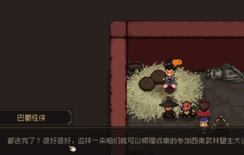 得到这个成就之后就可以继续前往姑子庙,在这里需要先和丐帮对话,获得丐帮心法之后,需要和神农帮的角色对话,这时候对方,会要求玩家去往指定的地点收集物品,交还物品之后,玩家就能获得一本武学,拥有了这份武学之后,可以在庙门口等待青城山的弟子,通过和弟子沟通,能了解到武林大会具体举办的位置。