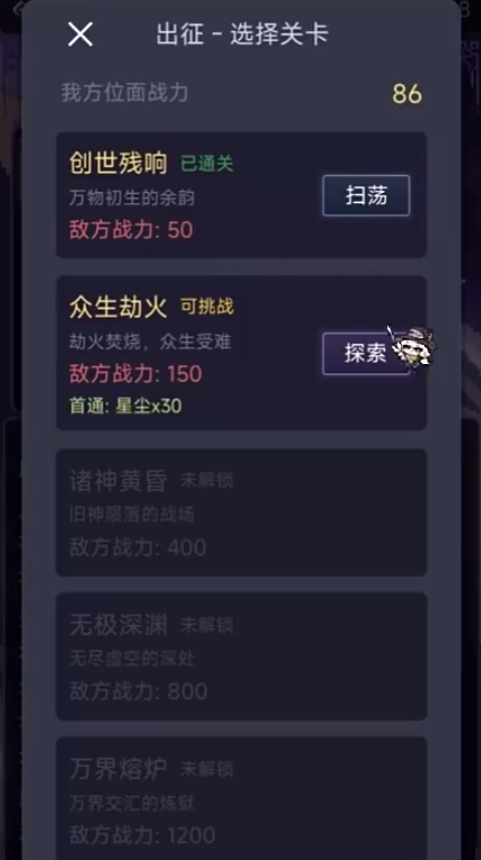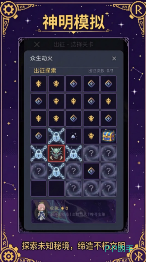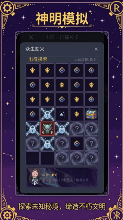 动态演进的世界观是本作核心特色之一。游戏内设年度周期系统,每轮时间推进均触发不可预知的随机事件——包括位面坍缩、古神低语、文明跃迁或维度潮汐等高影响变量。玩家的每一次决策,都将实时改写对应世界的演化轨迹。同时,通过探索格子化秘境地图,击败守关强敌、开启宝箱、收集稀有本源材料,是解锁新位面、升级神域权限的关键路径。