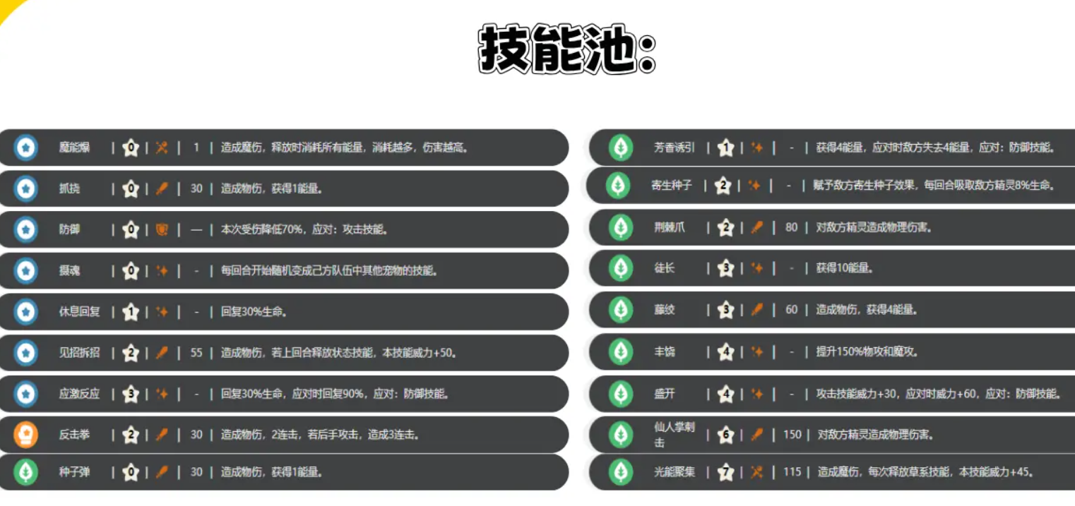 从喵喵的技能池中小伙伴们可以看出这是一只比较全能的宠物,无论大家是想把它作为输出还是辅助,都能够挑选到合适的技能,因此玩家们在面对不同的场景时,可以挑选出合适的技能来进行组合,并且随机应变。