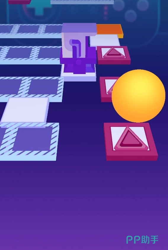 这些都可以随着闯关的深入在后续的机关上体验到,值得一提的是这关的机关设计也非常丰富,粉色带有三角箭头的机关砖触碰到以后,黄色小球就会直接向前冲刺一段。