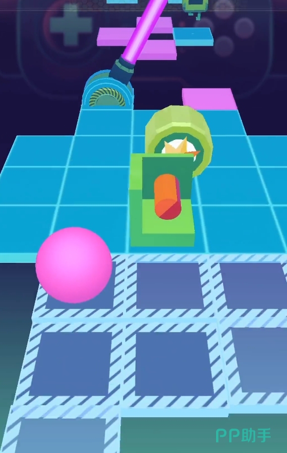 不过冲刺过程中也同样会面临很多危险,期间有绿色的圆柱体障碍物,也有到处闪动的激光,这都需要配合玩家个人的操作才能完美规避,值得一提的是到了关卡后半段,还会有诸如大摆锤,上升砖,左右移动的砖等各种令人意想不到的机关,所以如果要亲自体验的话一定要提前做好应对准备。
