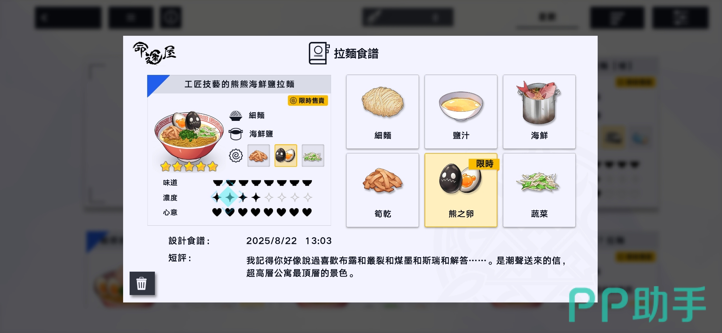 以上就是关于溯回青空拉面食谱有哪些的详细汇总。这八款推荐配方可作为日常经营的重要参考,但也不必完全拘泥于此。玩家可根据当前流行元素或特定骑士的喜好,灵活调整食材搭配,尝试创新组合。也许一次偶然的调配,就能诞生超高评分的独特拉面,进一步提升店铺收益与游戏体验。