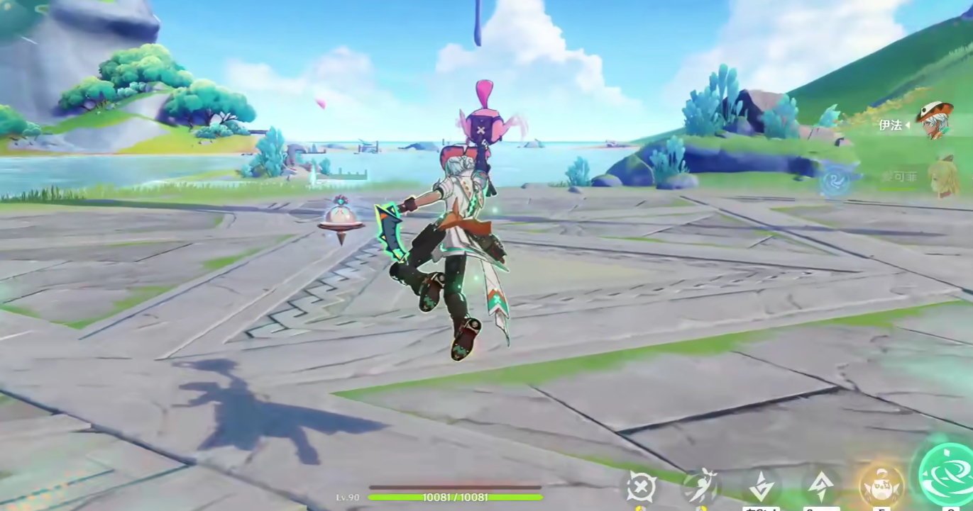 伊法的普通攻击,可以造成三段风元素的指向型攻击伤害,重击可以对前方目标展开射击,并且该射击会附带有风元素的aoe伤害,在下落时,伊法还能够造成范围型的风属性伤害。
