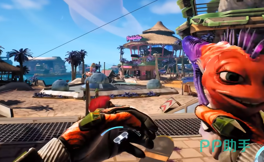 游戏构建了一个横跨多个异星生态的宏大宇宙观,玩家将化身来自不同星球的拟态生物,在沙漠星、凝胶星、浮空菌域等风格迥异的地图中自由穿梭。射击机制打破常规——每把武器均以真实动物为设计原型,例如“水母脉冲枪”可释放减速水雾,“穿山甲钻击炮”具备短距穿透与地形破坏能力,配合滑板位移与弹性锁链钩索,实现立体化机动战斗,操作上限高且充满即兴乐趣。