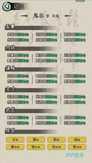 接下来是通关的关键能力点。武艺的提升一定不要急于追求高爆发,而是稳步推进,先达到90左右后,通过缉拿任务可以稳定刷到强力技能,几乎无敌。内政能力方面,初期的建筑如果能够提高一些,会让你在后期做将军任务时省不少事,成功率自然也高。至于文才,除非是走谋士路线,否则普通的任务和活动就让诸葛亮帮忙处理即可,顶着也能行。军事能力中,先学连射和箭雨是最为实用的,尤其是在战场上,提前布置好阵型可以大大提高打击效果。