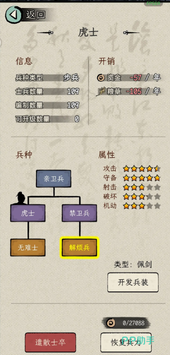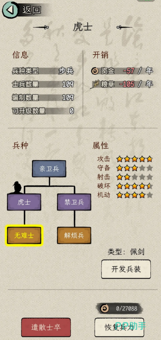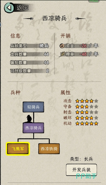 兵种方面,有两条路线可供选择。如果你偏爱远程攻击,无当飞军是个不错的选择,这支部队在战场上几乎无敌。要是骑兵才是你的最爱,飞熊军绝对值得培养,其属性和输出能力都是最顶尖的,紧随其后的是虎豹兵和西凉铁骑,它们在各种战斗中也非常有优势。