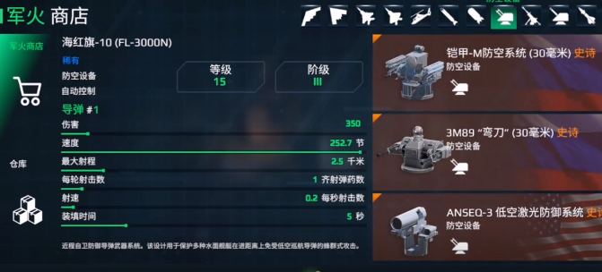 在面对三级船时,那就会有很多的防空选择。例如海拉姆、铠甲还有海红旗都有出色的表现。另外还可以选择弯刀、铠甲还有激光。将海拉姆和铠甲搭配在一起,那自然就会拥有明显的优势。铠甲主要的特点就在于可以拦截导弹,弯刀的优势就在于拥有较快的速度。
