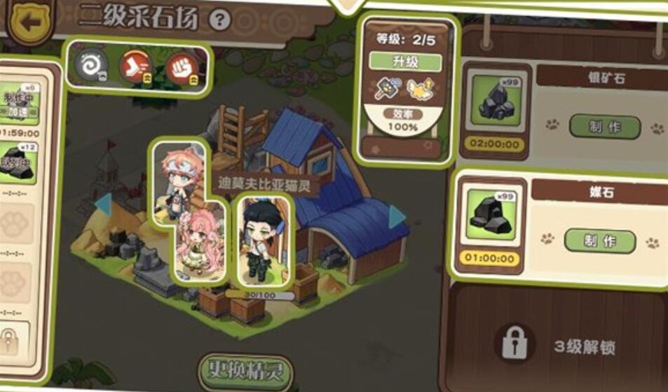 在生产体系中,精灵可被部署至各类功能建筑内执行自动化作业,例如矿场、工坊、温室等。每座建筑最多容纳三位精灵协同工作,但需注意其精力值会随产出进度持续消耗,需通过休息、投喂料理或使用恢复道具维持运转效率。