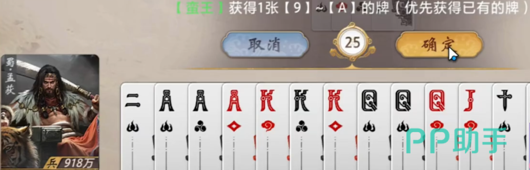 团队协作层面,孟获的终阶技能赋予其不可替代的战术枢纽地位。三张高点数牌的定向分发,既可用于强化队友关键回合的压制能力(如为关羽提供双A启动连击),也可用于干扰对手手牌结构(如向敌方辅助位传递大点数牌,迫使其被动消耗解牌)。但需注意:该效果仅作用于当前手牌中点数最高的三张,不包含装备区或判定区牌,因此实战中需提前预留高点数牌资源,并与队友建立明确的信号协同机制。