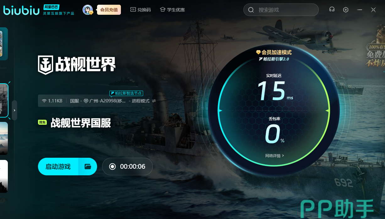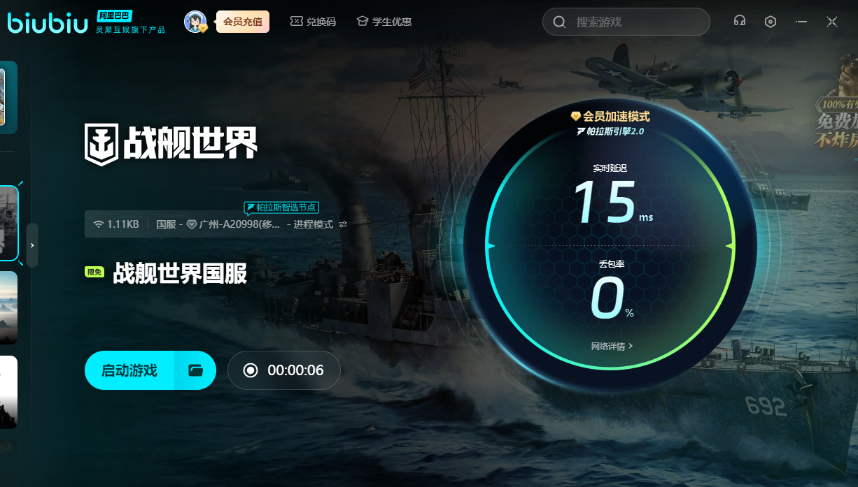 战舰世界作为一种海战大作,我们可以自由航行并攻击对手,要是太卡的话就会沦为对方的靶子。所以我们可以用上biubiu,加速之后就能更好地操控手中的战舰并击败对手。新用户的话可领取3小时的免费加速,另外新老用户输入【biubiu不卡顿】,就能额外获得三天免费加速。要是大家偶尔也想要跟海外的人切磋一下,就可体验一下国际服。用上加速器后,又能无视网络限制,直接来到大洋彼岸,与人开始对战。