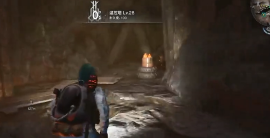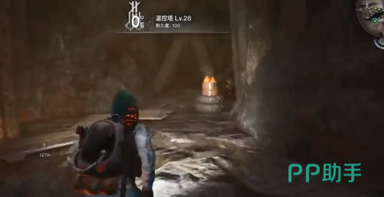 冷晶矿有一个大矿洞,冷晶矿就需要使用燃烧瓶。热岩矿用冰手雷或者冻鱼,接着来看一下正确的步骤。玩家可以先来到大河警戒区的传送塔,从这里就可以飞下去。如果是第1次过来,那么不如就先选择解锁,方便下一次再来。