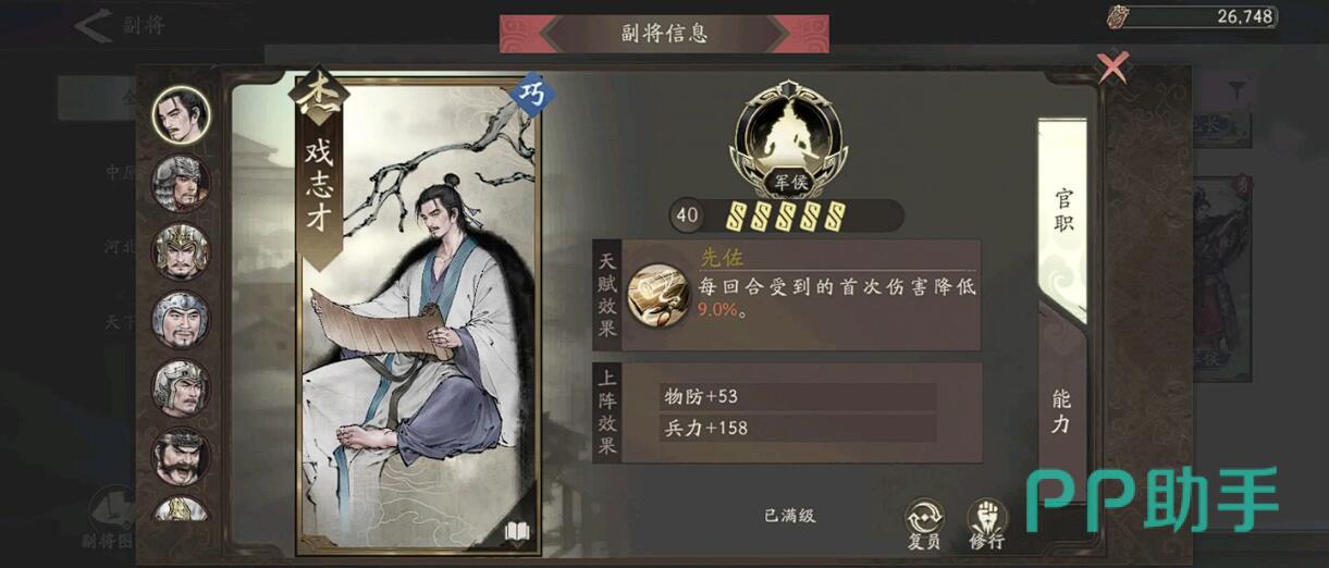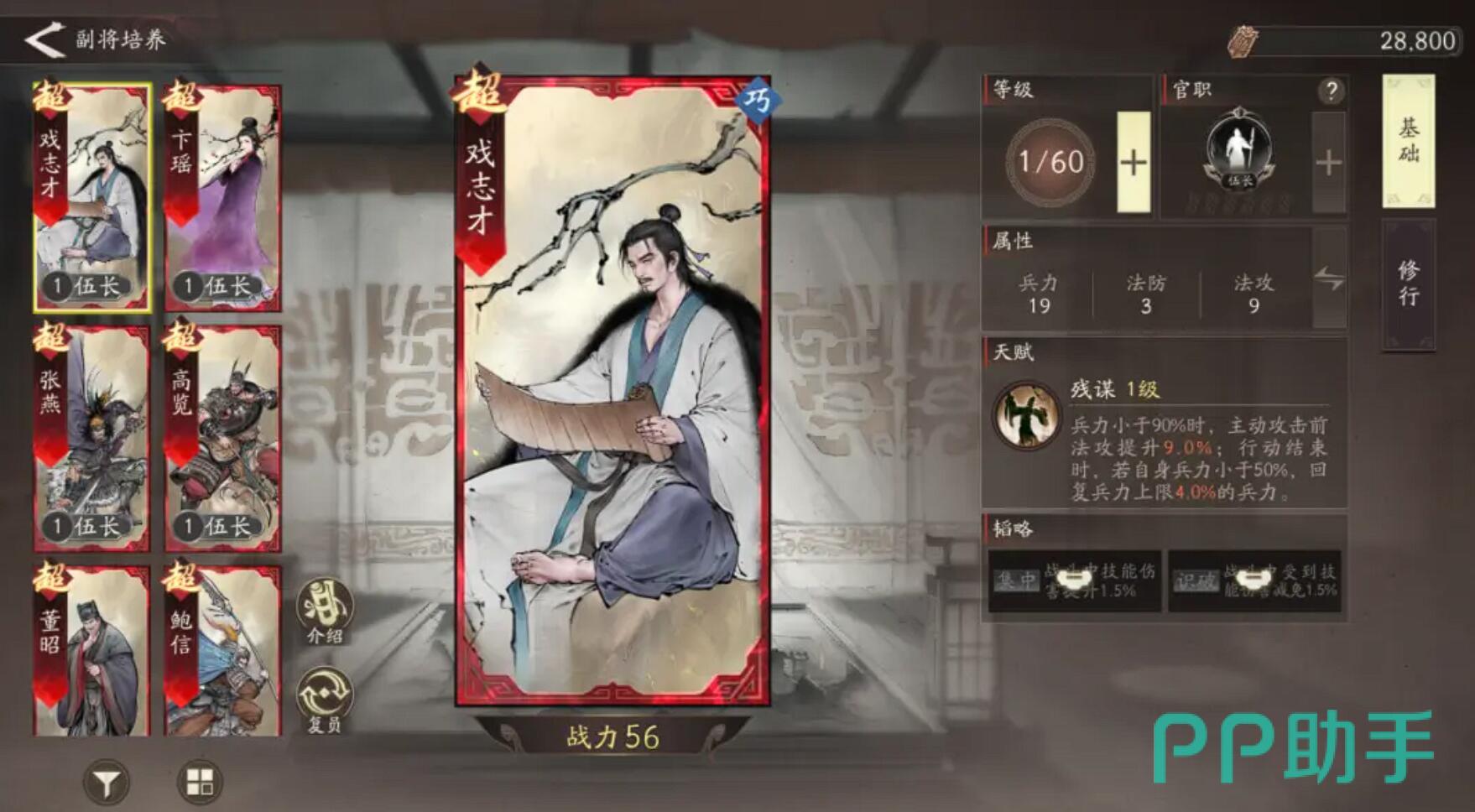 在《三国望神州》的游戏机制中,武将固然是核心组成部分,但若想真正释放他们的战斗潜力,副将的选择与搭配同样至关重要。其中,戏志才作为一名极具特色的辅助型副将,凭借其独特的血量调控机制,成为众多高阶阵容中的关键一环。通过残血状态下的增伤效果与持续回血能力,能够完美适配多种主将体系,提升整体作战稳定性。