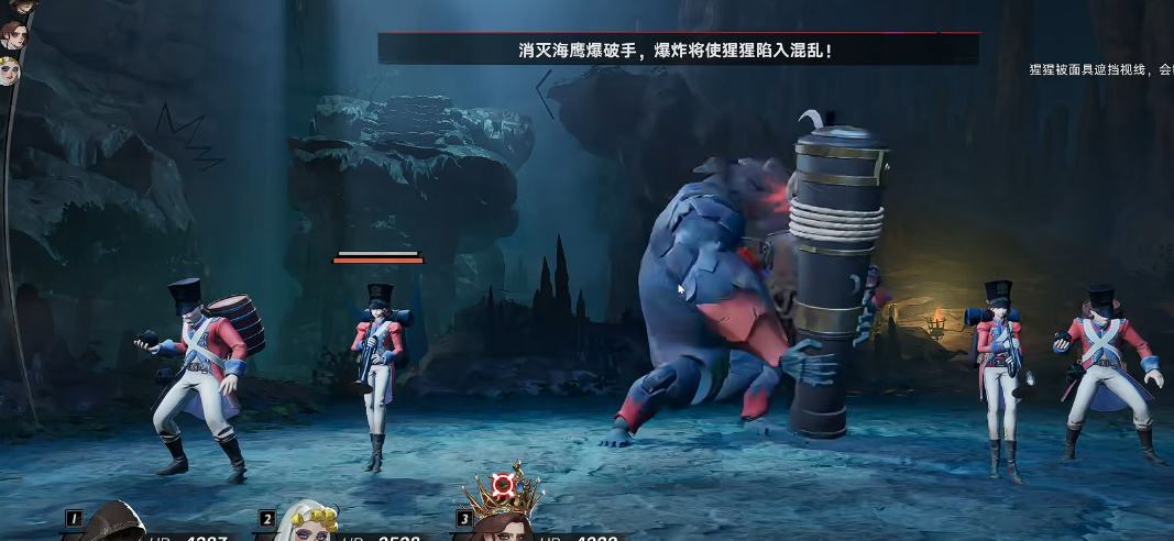推荐标准攻坚阵容为修女、船长、兜帽三人组合。其中船长承担核心AOE输出职责,兜帽与修女共同构建功能型辅助体系。战斗开始后,兜帽优先施放群体增益大招,为全队叠加“激昂”状态,提升整体作战效能;随后使用普攻技能快速清理敌方随从单位。船长则在站位就绪后,立即启动“剑术风暴”,对范围内所有目标实施持续范围打击。