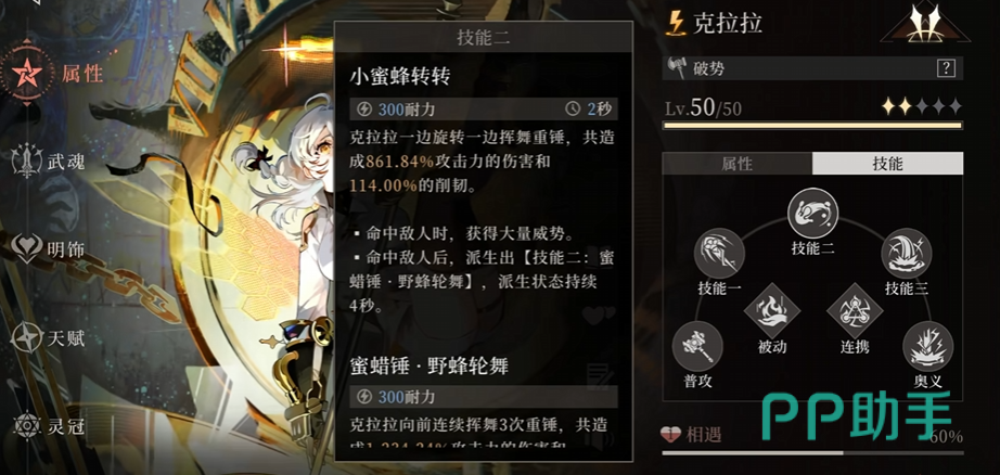 克拉拉属于蓄力型近战输出角色,其普攻第三段可触发强化状态,激活“命神之锤”以提升下一回合的伤害输出。大招覆盖范围广,爆发力强,蓄力等级越高,造成的伤害也越可观,常在团队作战中担任主要输出点。