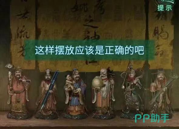 第三章的交错中,大家要先是用打火机这个工具,将两侧的蜡烛全部点燃,然后按照左左右、左右左、右右右的顺序要求,然后敲击门环,来到庭院,把灯笼点亮,寻找花轿中的化妆盒和香囊,找到假山的位置,按照正确的顺序来点击图片,顺利完成之后可以获得三叉戟,之后就来到庭院门外面,点击左边的石狮子,把遗漏在外面的拨号盘外壳放进来,按照正确的位置来调整,获得的钥匙就可以打开前面的房门,根据游戏的提示,将眼前的图案组成一共完成的人形团,来到右侧的报纸处,找到不同颜色的偏旁部首,在右下角的石狮子处,可以获得另一把的钥匙,之后把石狮子走测的柜子,按照福寿图的样子调整,之后可以获得羊头和猪头的雕像。