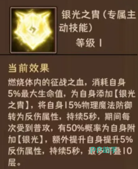 光系体系以“银光之位胄”为标志性技能,同样以5%生命值为代价,不直接攻击敌人,而是为自身赋予“荧光之位”状态。该状态下,狂战士可将15%的物理与魔法防御转化为反伤数值,持续5秒;且每当受到敌方普通攻击时,有50%概率获得1层“银光”效果,每层提升5%反伤属性,最多叠加10层。这一设计使光系狂战士兼具生存韧性与反击压制力,特别适用于高难度精英怪挑战与持久战场景。