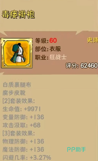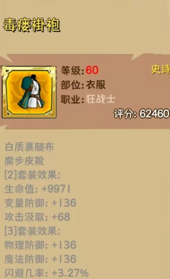 关于装备配置:60级阶段推荐优先成型“毒疫套”,以强化毒属性伤害倍率与状态触发效率;进入中后期后,若主走光系路线,则应切换为“黎明套”,该套装提供光、暗双属性加成,适配80级及以下全部光系技能体系。值得注意的是,毒疫套不仅提升毒伤,亦对狂战士全维度属性形成有效补强,因此即使转型光系,也可保留部分毒伤增幅部件,实现伤害结构的平滑过渡。整体而言,狂战士的装备兼容性极高,多数主流套装均可适配,无需刻意追求特定稀有装备即可完成高效养成。