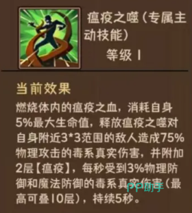 毒系路线则聚焦于“瘟疫之噬”,同样消耗5%生命值后发动,攻击范围同为3×3格,单次造成75%物理伤害,但伤害类型转为毒属性。其核心价值在于“瘟疫”状态——每次命中可叠加两层,每层降低目标3%物理防御与魔法防御,持续生效。该机制显著放大了队伍整体输出效率,尤其适合配合高频率普攻或技能连招的职业协同作战,在副本攻坚与PK对抗中具备极强的功能性。