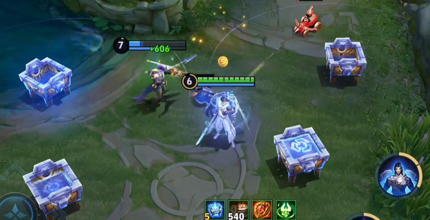一技能可在指定区域召唤鼎,对范围内敌人造成伤害并击退,当大禹靠近自身召唤的鼎时,会获得移速提升与生命回复效果。建议在游戏前期优先在边路、中路等关键位置布置鼎,以便后续灵活调度。二技能则让大禹进入远程形态,在处于鼎上的状态下可攻击多个目标,并伴随持续的生命恢复,增强了持续作战能力。