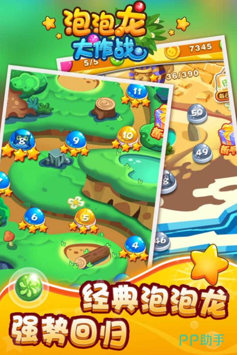 《泡泡龙大作战》玩法简单有趣,只需要把相同颜色的泡泡放到同一区域,就能实现快速消除。游戏主要是闯关为主,玩家可以看到丰富的关卡,难度也会不断提升,游戏过程中不要忘记提高自己的技术。每次闯关都会有评分,能够了解处于什么水平。对于评定不满意还能继续闯关,争取全都达到三颗星的评定。