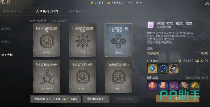 探险任务同样基于主线任务的推进来解锁,任务流程较为复杂,玩家需要仔细研读任务提示才能顺利完成,完成探险任务,玩家不仅能得到经验值、养成材料和金币,还能解锁觉醒回廊、轶事等内容,从而获取更多资源,探险任务中经验越高的守护灵探险队,可探索区域的奖励越好,还能获得用于守护灵与命运星图升级的特殊材料,玩家每天可接取12次侠行任务,次数在次日凌晨4点刷新,完成任务可以获得各种奖励,还有机会获得武功强化材料、封印饰品装备、金币等随机奖励,任务奖励的经验值会根据玩家所处地区和任务品质而定,所在地区越高级、任务品质越高,获得的经验值就越多,玩家可在每天上线后优先完成侠行任务,获取稳定的经验收益。