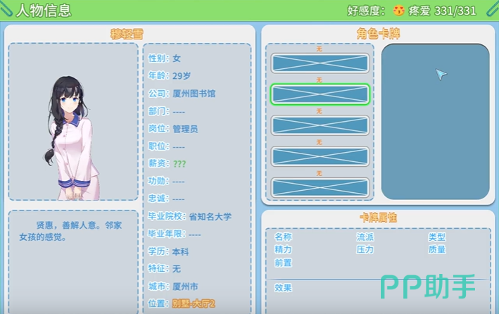 今天带来的是职场浮生记穆轻雪攻略,在职场浮生记中,穆轻雪是一个充满魅力且深具故事张力的可攻略角色。她的存在不仅丰富了游戏的情感体验,更通过细腻的角色塑造和多层次的互动,将玩家引入一段极具挑战和沉浸感的关系线。穆轻雪的攻略过程并非简单的好感度堆积,而是通过对她背景的深入了解、触发关键剧情以及完成特定任务,逐步推进情感发展。