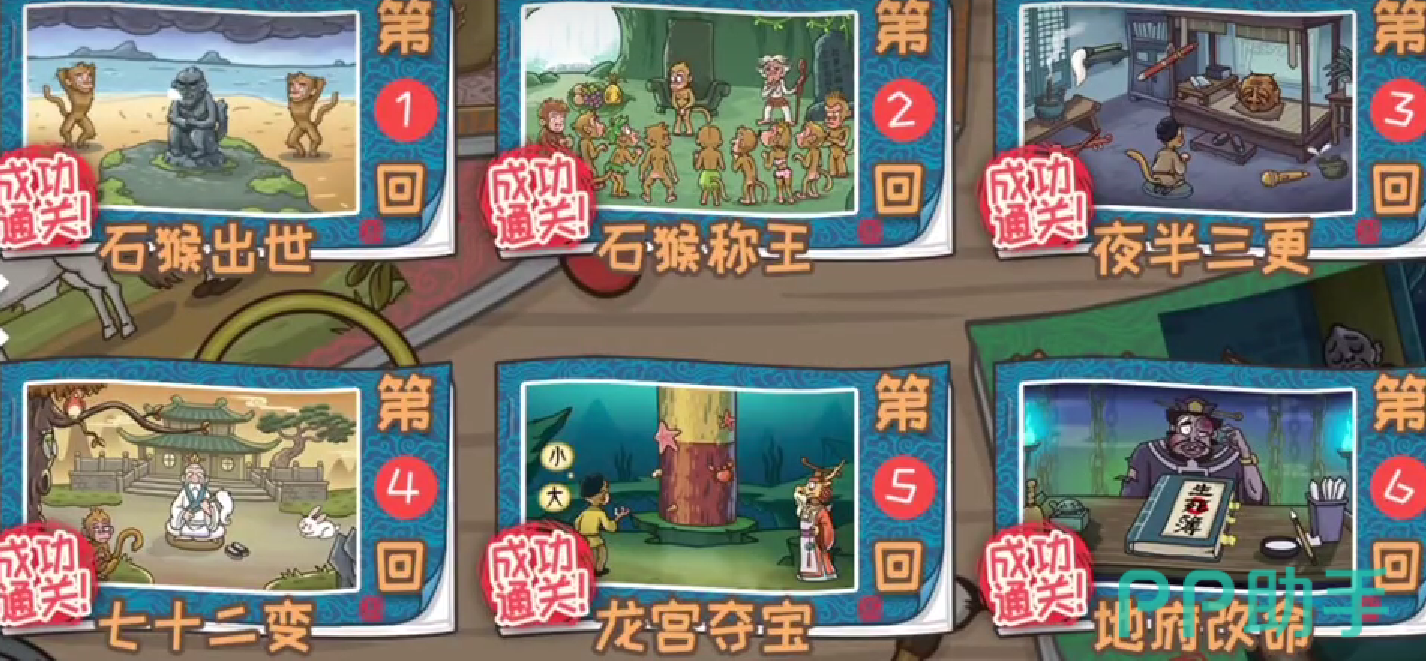 在游戏的第一关石猴子出世,旁边有两个小猴子,玩家拖动他们站立就会进入跳舞状态石猴就出生了。后续的关卡任务游戏提示玩家抚摸猴子头,玩家来回摸猴头就能通关。在龙宫中玩家同时按住金箍棒拖动就能收复。