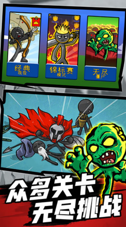 火柴人联盟二这款手游把每一个关卡设计的都非常有趣,而且每一个火柴人都有相应的秘技。在过关的时候,玩家要利用这些特殊技能才能够打败关卡中的boss。该画面设计的融入了很多暗黑元素和搞笑元素,这让这款游戏有了多种多样的模式和更多的玩法,也会让玩游戏的玩家对这款游戏爱不释手。