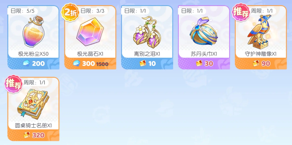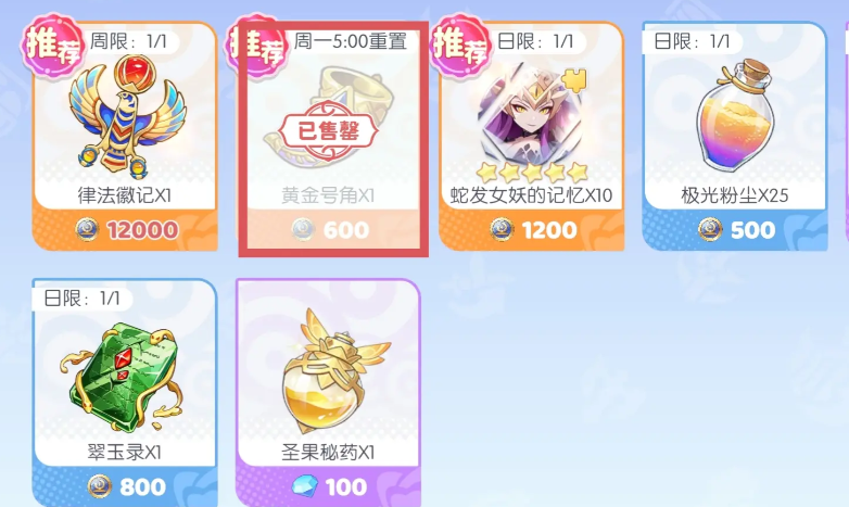 神器商店方面,黄金号角需保持每周稳定购入,不可遗漏。极光粉尘建议每日采购,但若当前神器进阶进度较缓,或已通过刷取神器副本、打造符石等途径稳定获取,则可酌情下调频次。贤者之石与所罗门之戒属于通用型高适配神器,可根据自身阵容缺口灵活补足。