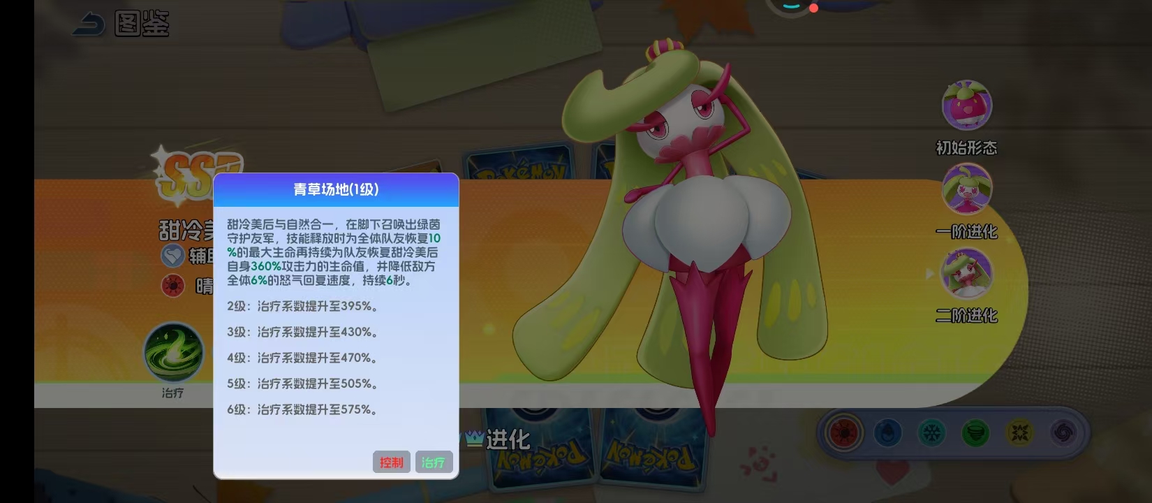 青草场地是其战略支点技能:释放后立即为全体友方恢复10%最大生命值,并在持续期间每回合提供基于自身攻击力的治疗效果;同时,该场地会压制敌方全体怒气回复速度,降低幅度达6%。这一双重机制使其超越常规治疗技——既保障前线续航,又延缓对手关键大招释放频率。在PVP对局中,满级青草场地常成为打断敌方连招链、扭转战局走向的核心枢纽。