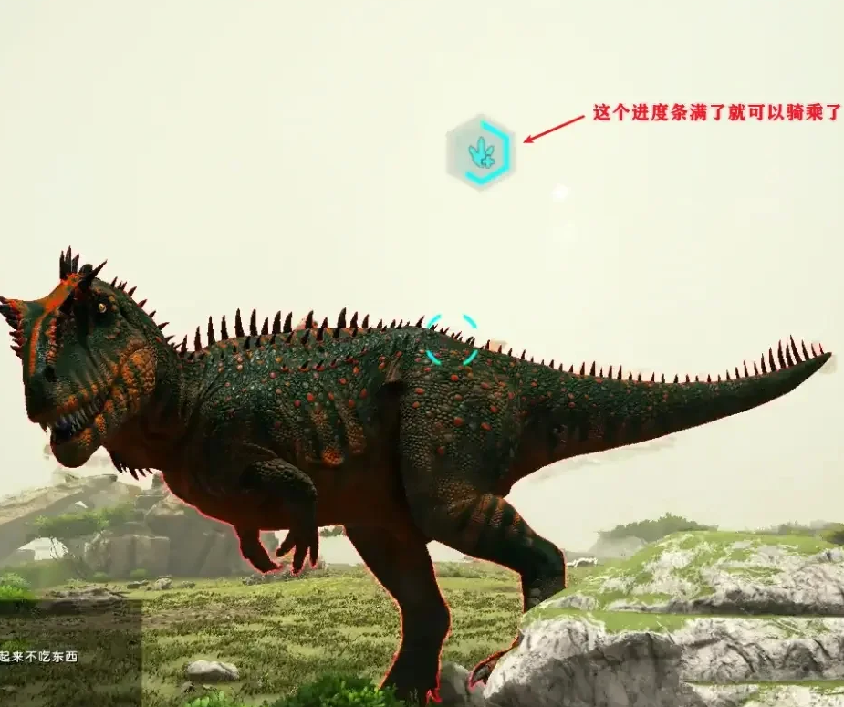 首要认知要点:鲨齿龙不具备常规眩晕驯服兼容性。任何使用麻醉箭、麻痹陷阱或投掷黑莓试图使其昏迷的行为均无效,且会直接触发敌对反应。其驯服逻辑基于“喂食信任机制”,即通过主动提供猎物尸体建立初始亲和度。