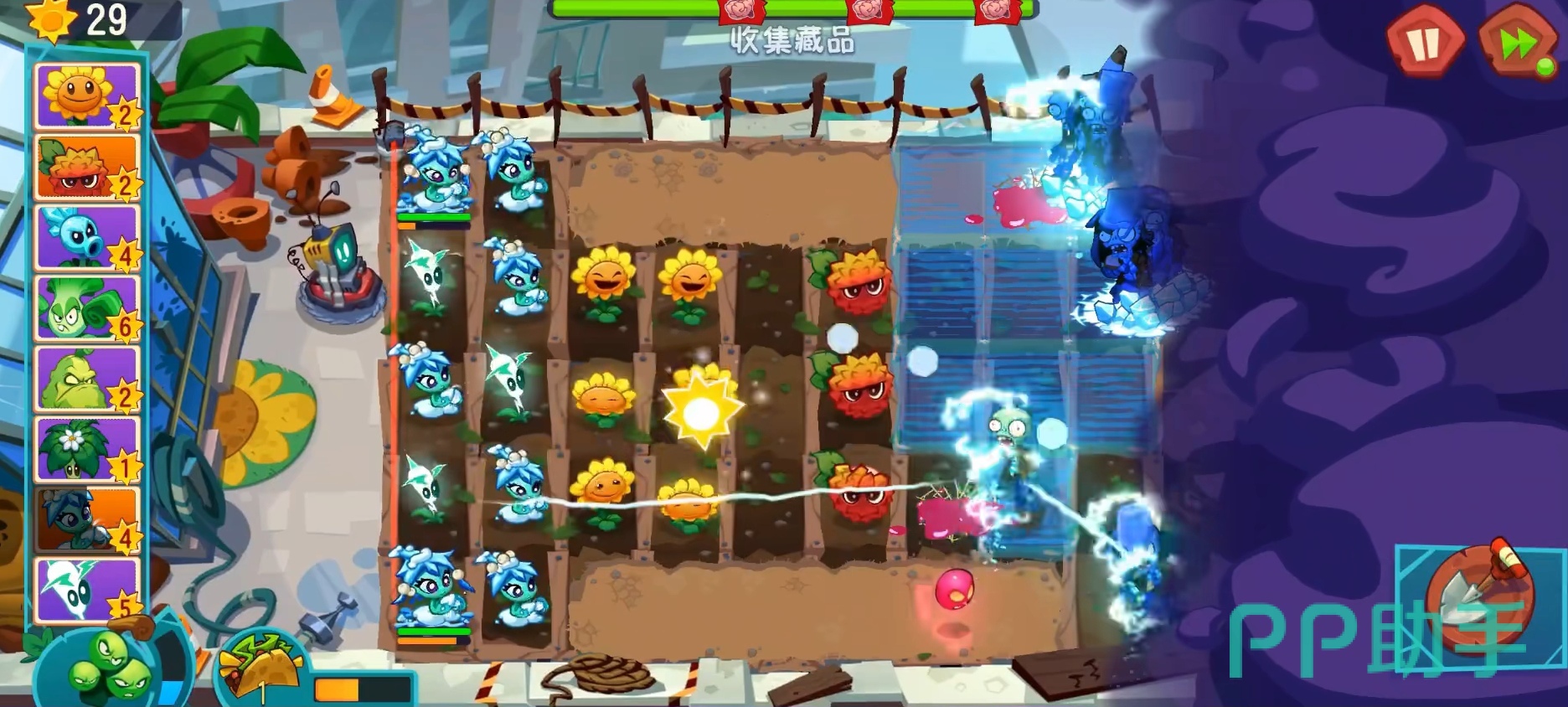 针对中等血量的群体单位(例如铁桶僵尸、路障僵尸),其暴击溅射可实现高效清场。面对高速突进类敌人(如矿工僵尸或后切型单位),通过手动瞄准可精准控制关键目标,有效延缓进攻节奏。即便遭遇高防御单位(如机械橄榄球僵尸),虽无法施加冻结,但仍能施加70%的减速效果,配合输出植物形成压制。即便是冰河世界中的BOSS,尽管免疫冻结状态,但依然受减速影响,檞寄冰仙子可在战斗中显著降低其行动频率,为团队创造更多输出窗口。