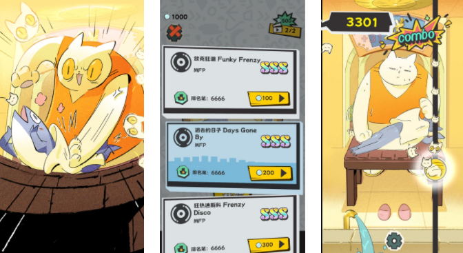 敲背王把日常生活中人们最喜欢的按摩元素融入了进去,只不过在游戏里玩家所扮演的是一只猫咪,在这里会有很多动物前来按摩捏背,为了能增加按摩体验需要那么开始之前先去选择一个音乐,然后根据音乐的律动点按屏幕,只有每一次点击都符合节奏,才能让顾客有优质的按摩体验,想挑战手速的就可以来尝试一下游戏。