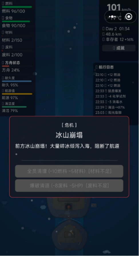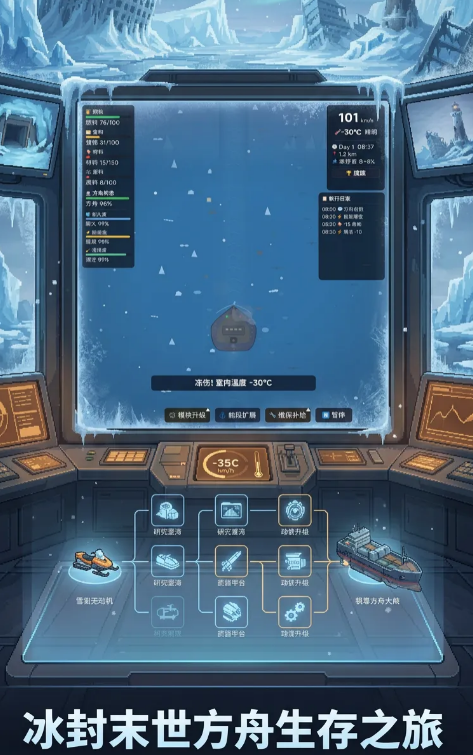 方舟内部初始物资极度匮乏,尤其在燃料、高热量食品与抗寒医疗包等关键品类上尤为紧缺。玩家须通过规划外出探索路线、配置队员装备、评估风险等级等方式,高效回收废墟中的稀缺资源。部分探索任务还将触发分支剧情,揭示冰封纪元背后的真相,并解锁新的方舟功能模块或生存科技树节点。