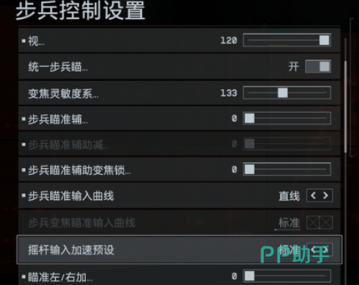 进入游戏后,前往主菜单中的设置界面,选择控制器配置选项。点击右下角的编辑方案,在步兵类别中找到控制设定并进入修改页面。此处可调整“步兵瞄准辅助”参数,建议将瞄准曲线设为直线模式,并将左右手的加速灵敏度调至0,这样能有效稳定准心移动轨迹,让瞄准过程更加顺手,提升射击准确度。