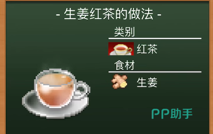 接下来是红茶系列饮品的配方说明。奶茶通过牛奶与红茶调和制成;苹果茶需添加苹果、蜂蜜及红茶共同冲泡;生姜红茶仅需生姜与红茶即可完成;马萨拉茶则以肉桂和牛奶为主要材料,带来独特香气。
