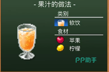 最后介绍的是软饮类饮品的制作方式。果汁的原料为苹果、柠檬汁与水;混合果汁通过牛奶与苹果调配而成;汽水则是在碳酸水中加入各种水果调制,形成丰富多变的口味体验。