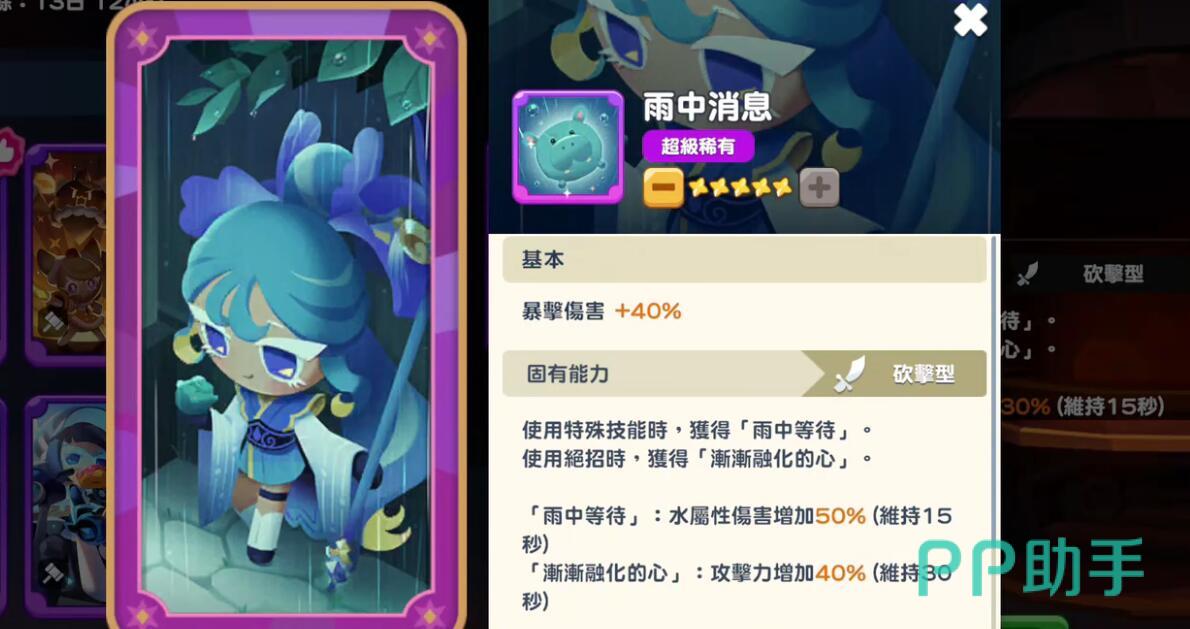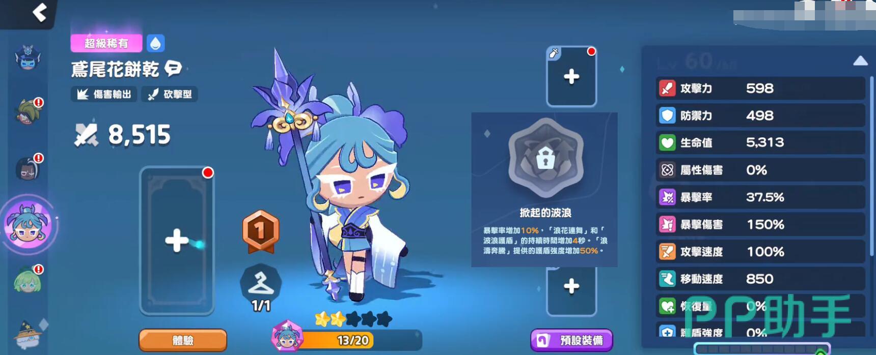 当鸢尾花饼干达到60级满配状态时,可拥有37.5%的基础暴击率,这在同类型的砍击输出中具备显著优势。她的被动技能“锋刃专注”还能额外提供10%暴击率加成,结合蓄力叠加机制,整体输出能力极为恐怖。平均每三次普通攻击即可触发一次暴击,而在蓄力层数叠满后,仅需两次攻击便可完成暴击循环,输出节奏流畅且高效。该特性使她在面对刷新频繁但数量较少的敌人时表现出色,蓄力攻击附带的穿透效果能迅速清理战场。对抗BOSS时,满层释放的必杀技还带有破甲效果,有效弥补了其598基础攻击力略显不足的问题。随着后期技能与被动的持续优化,该角色甚至可以达成满暴击状态,伤害上限进一步提升。