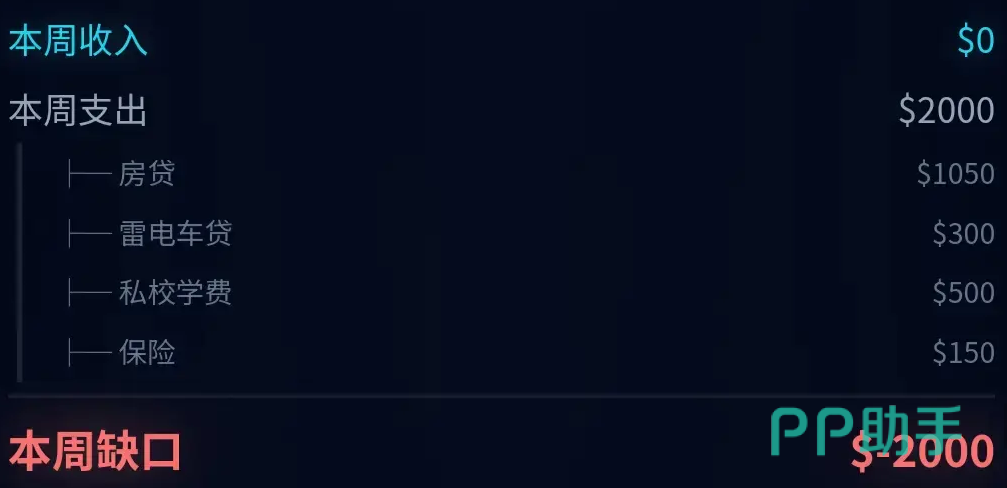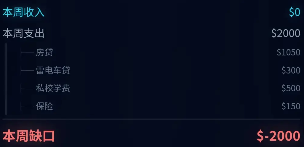 在资金管理层面,游戏严格模拟现实财务结构:月度生活开销、房贷、车贷、子女教育支出、商业保险缴费等刚性支出逐项列示,收支缺口动态可视,真实反映都市人群普遍面临的经济承压状态。