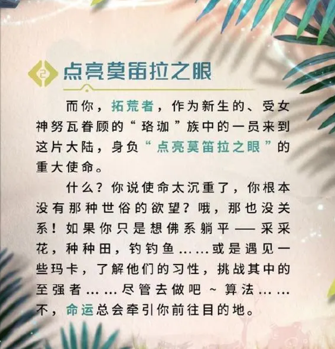 荒野起源莫笛拉拓荒攻略已经做了相关的介绍。玩家点亮莫笛拉之眼时可能要完成一些任务,也需要迎接对应的挑战,这样才能够成功的点亮并且恢复世界的自由。而整个游戏的核心所在是以生存为主,所以说玩家在细节方面要多加注意。